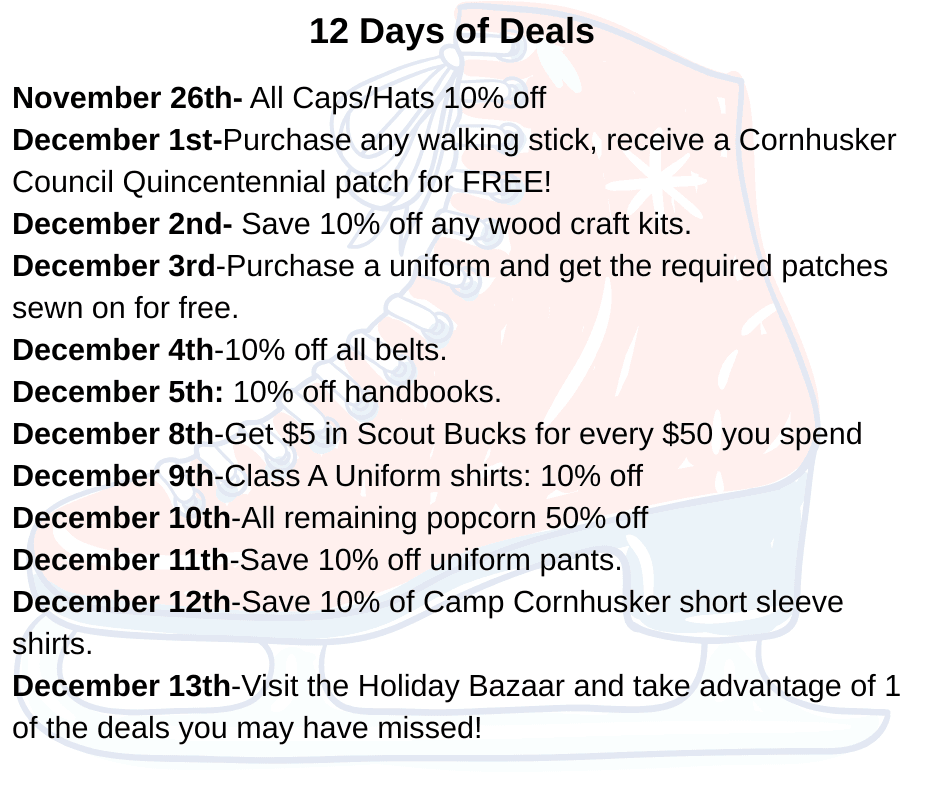 Don't miss out on the 12 Days of Deals! Going on now at the Scout Shop.